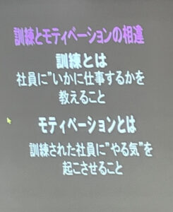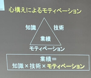 やる気がない、疲れている、という状態がモティベーション低下というのは誰でもわかる事ですが、予約が入らない、営業電話が怖くなる、売り上げが上がらない、という「困った」現象も、モティベーション低下によるもの。このような時はまず立ち止まり気持ちを書く!これだけで解決の糸口が見え、横道に逸れる危険性がなくなる。モティベーションが下がるのは当たり前、上げるのは技術!今日も素晴らしい内容でした。
